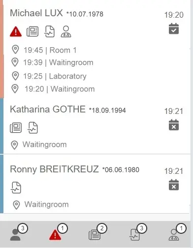 Alle Check-ins erscheinen automatisch in einer webbasierten Übersicht. Die MFA sieht, wer wann eingecheckt hat und kann Patienten gezielt per SMS aufrufen – ganz ohne Durchrufe am Empfang.